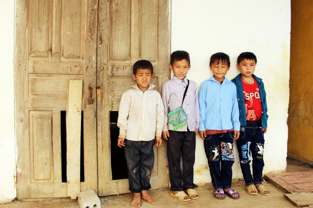 Những đứa trẻ đi học mang theo củi đến điểm trường chính để “góp củi”. Khoản học phí cần phải đóng góp để đến trường