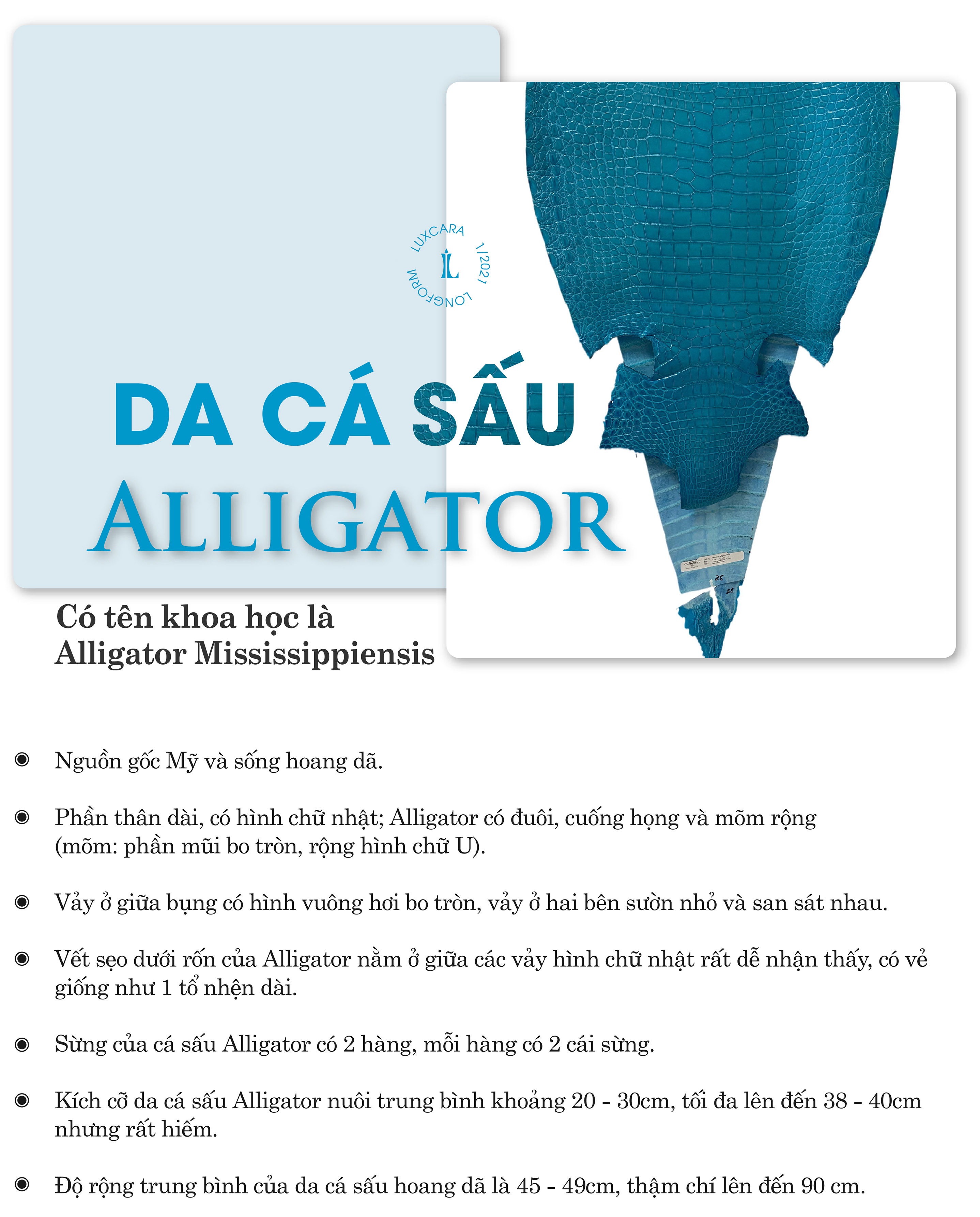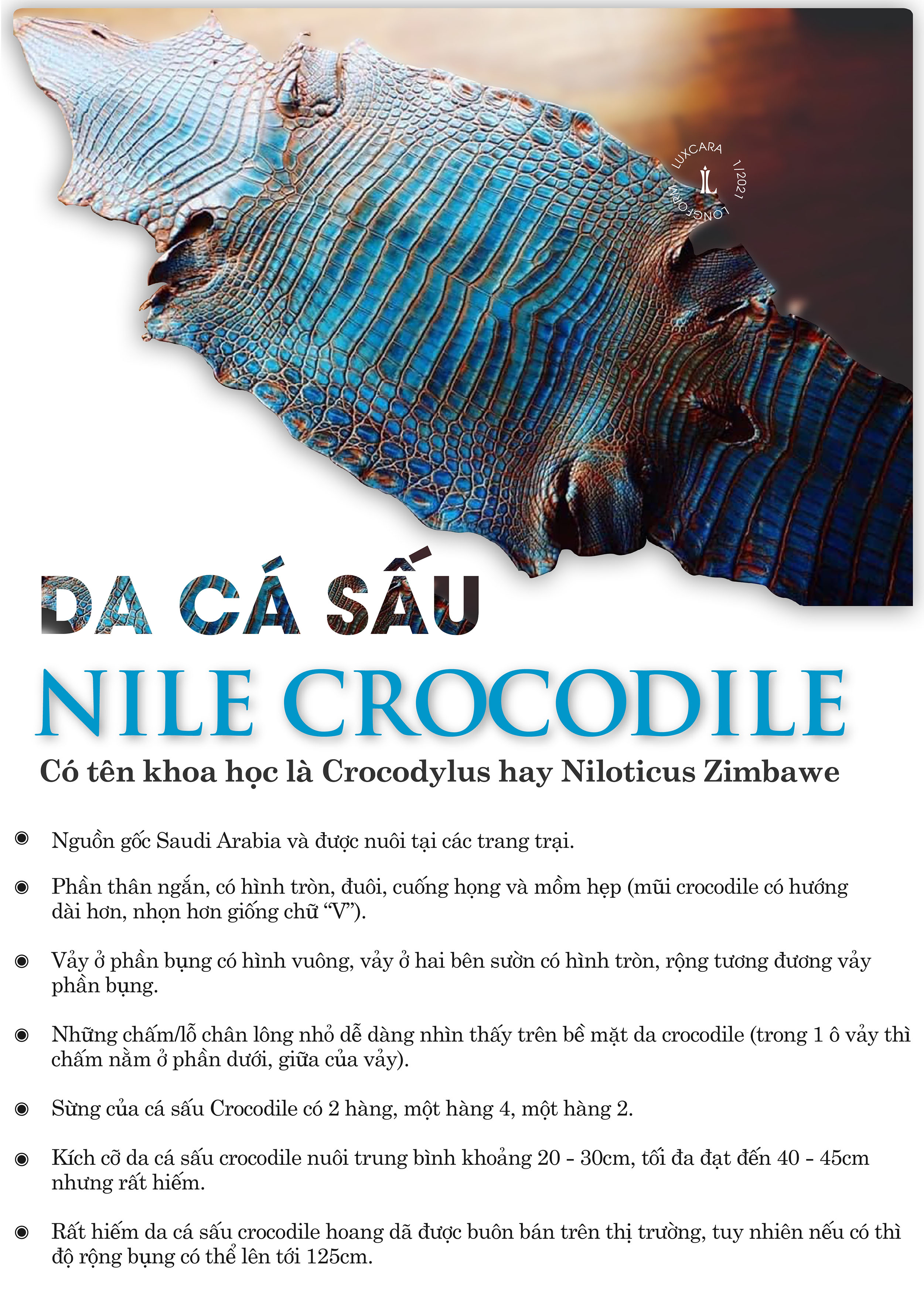 Da cá sấu được giới mộ điệu thời trang xa xỉ đánh giá là một trong những chất liệu da có giá trị nhất và là lựa chọn hàng đầu tạo ra các dòng sản phẩm thời trang của các thương hiệu hàng đầu thế giới như Vuitton, Gucci, Versace và Burberry…
