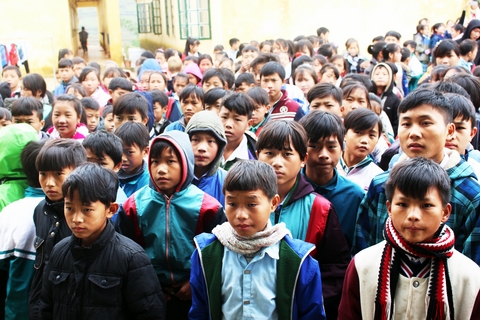 Những khuôn mặt trẻ thơ vẫn hồn nhiên đối diện với sự khắc nghiệt của thời tiết giữa núi rừng vùng cao.