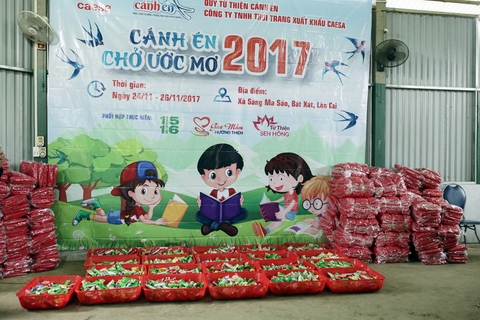 Chương trình từ thiện “Cánh Én Chở Ước Mơ” 2017 do quỹ từ thiện Cánh Én (Công ty TNHH Thời trang Xuất khẩu CAESA) tài trợ với các hoạt động lắp đặt và nâng cấp 20 hệ thống điện năng lượng mặt trời đến 20 điểm trường bản thuộc xã vùng cao đặc biệt khó khăn Sàng Ma Sáo (Bát Xát, Lào Cai) nhằm giúp các thầy cô giáo cắm bản có ánh sáng nguồn điện sinh hoạt hàng ngày, từng bước khắc phục vượt qua khó khăn.