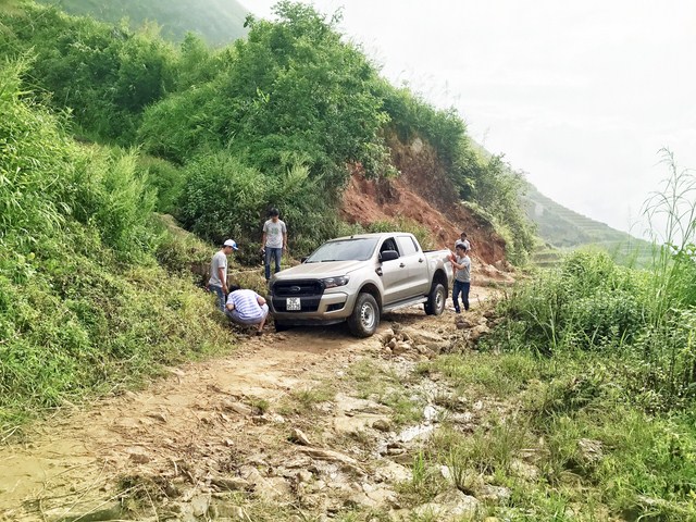 Đường xa đã đành, lại còn rất cheo leo. Nhiều con suối, dốc đồi đầy đất đá bây giờ đi qua nhiều bản rồi nên thành quen chứ như lúc vào mấy bản đầu tiên thấy sợ lắm. Khổ nhất là những bản trên cao như Trà Phà, Nhìu Cồ San lúc nào cũng sương mù bao phủ, thời tiết như trời mưa, đi không cẩn thận là bị trượt chân ngay. Thấy đường đi khó khăn, hiểm trở vậy đôi lúc cũng sợ và nản lòng, nhưng vì thầy cô mà nên phải cố gắng thôi. Với lại nhìn cuộc sống của các thầy cô ở đây thiệt thòi, khó khăn thiếu thốn nhiều vậy rồi mà việc nhỏ này mình không giúp được nữa thì tội lắm”, anh Cường, trưởng nhóm Kiến trúc Xanh 1516 tâm sự.