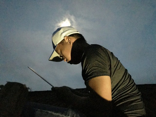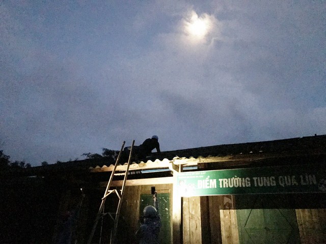 Các kỹ sư cố gắng lắp đặt để thêm 1 điểm trường có điện dùng trong đêm.